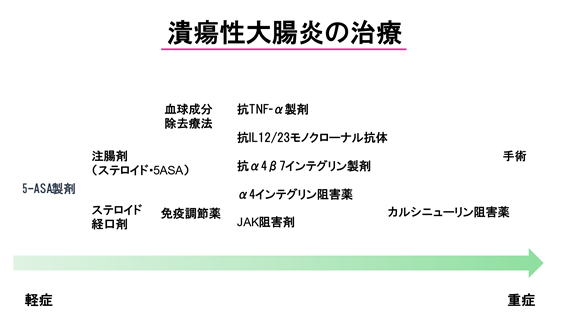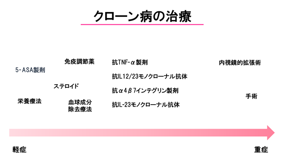 潰瘍性大腸炎とクローン病は根本的な治療はなく、近年患者数が増加しています。しかし、完治させることは困難ですが、近年さまざまな内科的治療が開発され、長期に寛解維持できる方が増えてきました。