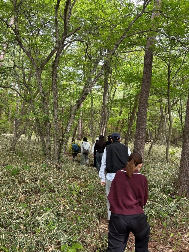 森林散策が始まったところです。清泉寮のひんやりとした気温の中歩くことができてとても気持ちがよかったです