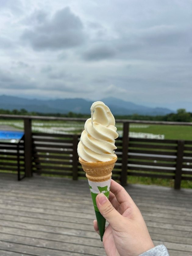 宿泊研修最後に清泉寮のソフトクリームを食べました。甘くてとてもおいしかったです。 |